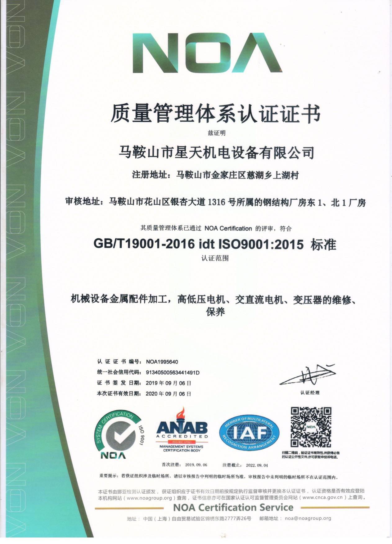 質(zhì)量管理體系證書